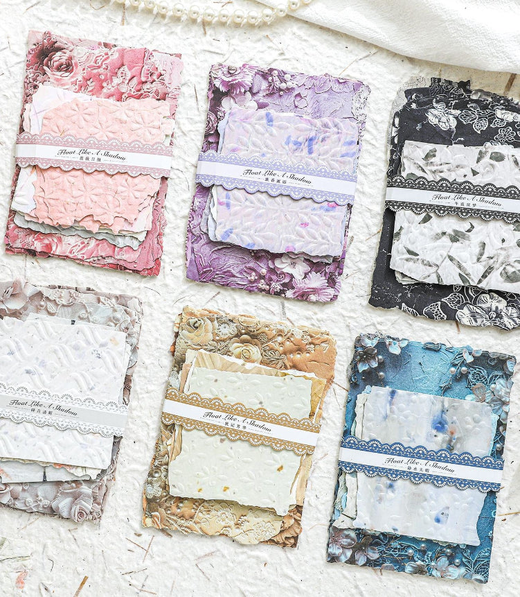 Floating Flowers Shadow Series Vintage Embossed Paper — 20 Sheets